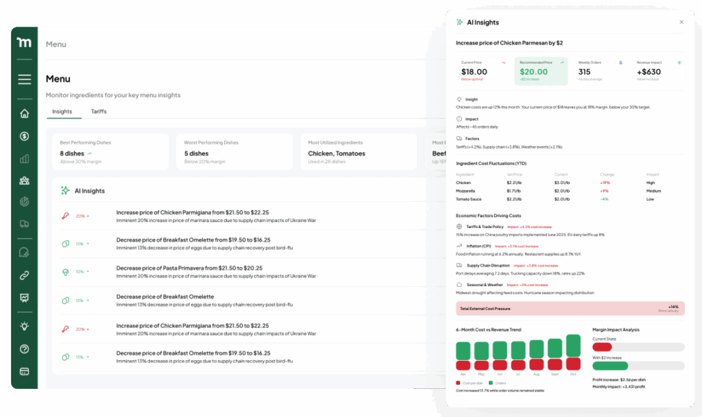 Instead of spending weeks realizing you’ve been bleeding profits on a few dishes, you’ll see risks instantly — all in one place, automatically updated.